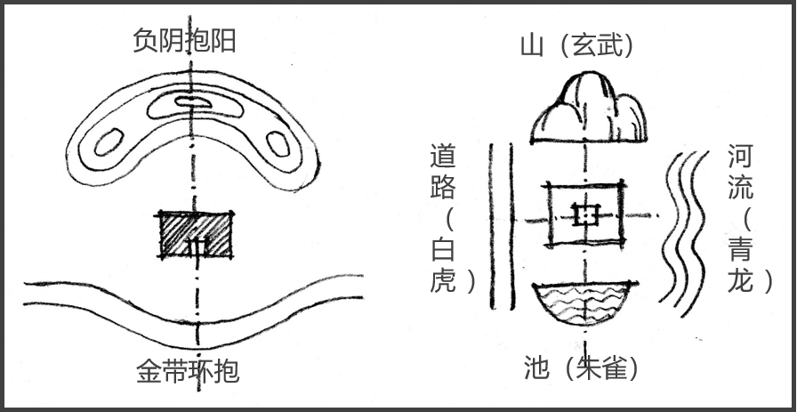 圖13 傳統(tǒng)風(fēng)水理論——負(fù)陰抱陽,山水交匯