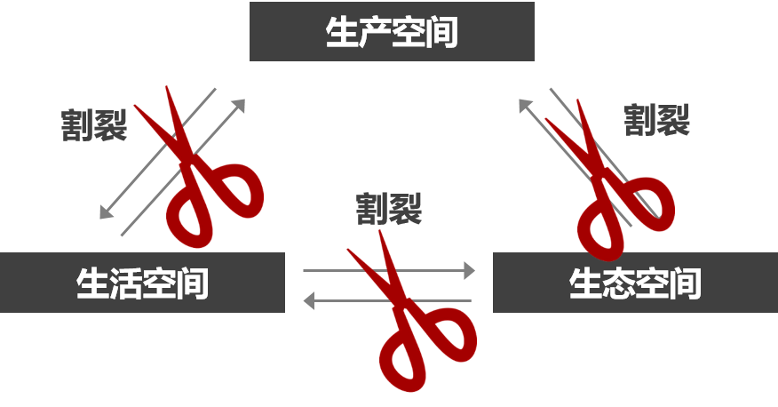 圖7 城鎮(zhèn)三生空間三者耦合度低,界限明確